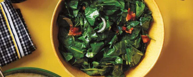 As verduras são ricas em nutrientes como a vitamina K, C, ácido fólico e vitamina A. O bacon, por sua vez, agrada com um sabor rico e brilhante.
