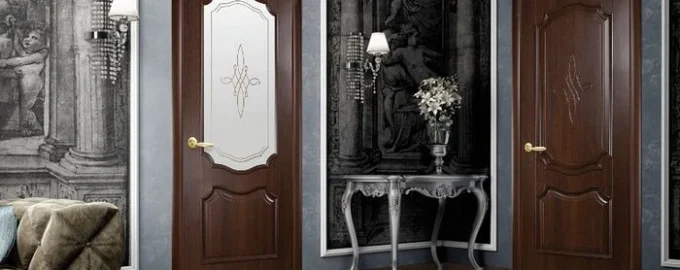 - Estilo clássico. O estilo clássico é caracterizado pela elegância e pela racionalidade. Aqui é possível escolher portas com folheado, que imita a madeira natural, com painéis decorativos ou fresagem. As cores quentes – montanha, carvalho, wengué – apoiam o carácter salgado do interior.