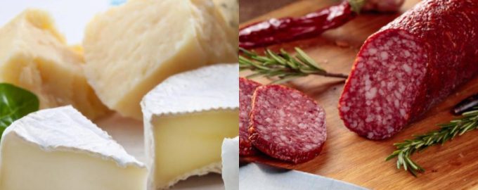 Salsichas e charcutaria. As carnes fumadas e os cortes como o fiambre, o bacon, as salsichas, o salame, o presunto e o pepperoni estão entre os líderes do teor de sal.