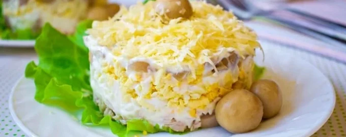Vai precisar de cogumelos – 300 g (cozidos ou fritos), ovos cozidos – 4 peças, queijo duro – 200 g. Esta combinação de produtos proporciona um equilíbrio perfeito de ternura, nutrição e sabor.