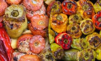 - Ralar os legumes num ralador médio e espremer o excesso de líquido. Juntar a sêmola, o pão ralado, as especiarias e misturar. Deixar repousar a mistura durante 5 minutos.