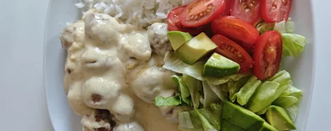 As almôndegas de carne são preparadas de forma muito simples, mas servidas com um molho saboroso e cremoso que torna o prato suculento e tenro.
