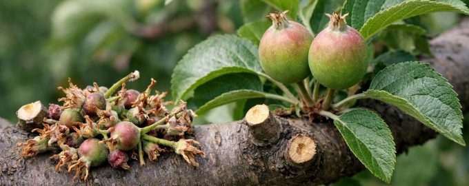 Quando uma macieira está sobrecarregada de culturas, produz grandes quantidades de hormonas que bloqueiam o crescimento de novos rebentos. O resultado é um excesso de frutos este ano, que muitas vezes crescem pequenos, e ramos vazios no próximo ano.