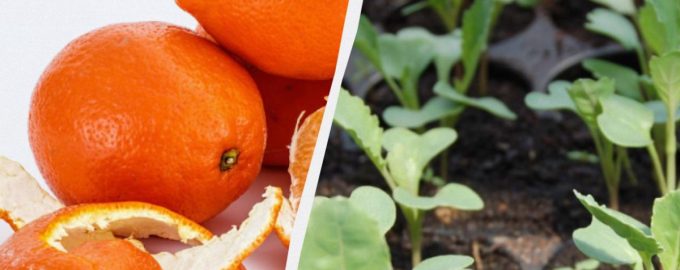 As metades da casca da laranja podem ser utilizadas para cultivar plântulas. Segundo os especialistas, este material é rico em azoto e potássio, o que ajuda as plantas jovens a obter nutrientes.