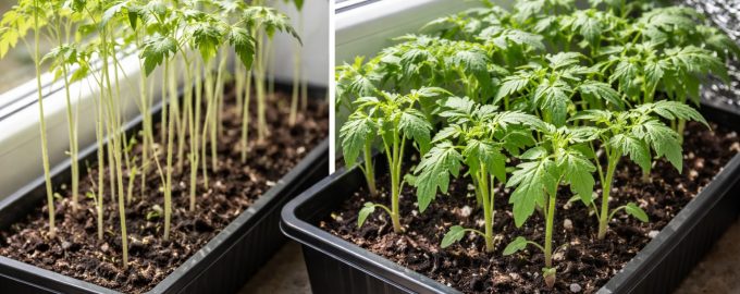 As suas plântulas de tomate estão irremediavelmente alongadas e com um aspeto dolorosamente pálido devido à falta de energia solar. Sem uma correção adequada da luz e da temperatura, estas plântulas não produzirão uma colheita decente, mas a situação pode ser remediada em apenas alguns dias se conhecer as necessidades fisiológicas da planta.