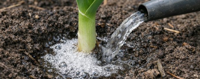 A primeira coisa que o alho precisa na primavera é de vitalidade azotomas numa forma facilmente digerível. Em vez de utilizar granulados duvidosos, utilizo uma solução de amoníaco comum de farmácia. Este dá um forte impulso ao crescimento da massa verde, enquanto os nitratos não se acumulam no solo.