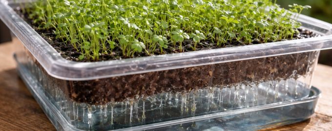 Se as plântulas estiverem numa janela, coloque uma folha de espuma de plástico por baixo do recipiente.