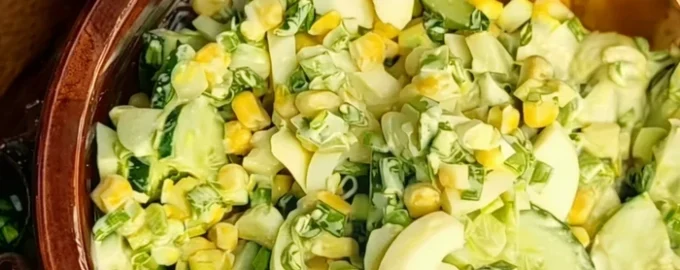 A salada “primavera” é um clássico da cozinha ucraniana, que combina ingredientes simples com um sabor brilhante e leveza