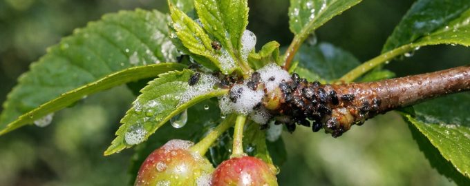 O meu favorito é. amoníaco. Os afídeos não suportam o cheiro pungente do amoníaco e, para a própria cerejeira, é também uma fertilização foliar ligeira com azoto.