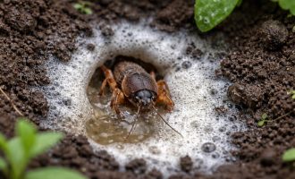 É desejável encharcar a camada superior com biopreparações, uma vez que algumas fases da praga podem estar na camada superficial do solo.
