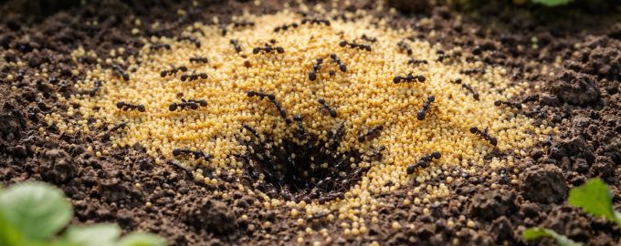 Nuance secreta: para tornar as formigas mais activas na recolha dos grumos, recomendo que se misture o painço com uma pequena quantidade de açúcar em pó. Isto torna o isco tão atrativo quanto possível para as operárias.