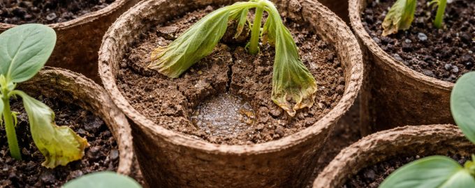 Para evitar que as plântulas de pepino murchem subitamente em vasos de turfa, a solução definitiva é garantir a reidratação profunda do substrato através da rega por imersão e da quebra da tensão superficial da água com uma gota de detergente neutro, além de nunca utilizar turfa pura sem a adição de componentes que estabilizem a estrutura e a acidez.