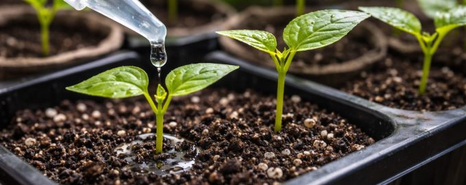 O peróxido de hidrogénio actua como um adaptogénico. Prepara as plântulas para o stress que é inevitável quando passam para o campo ou para a estufa. Uma semana antes da transplantação, vale a pena efetuar uma última pulverização para endurecer as paredes celulares das plantas.