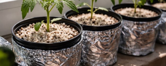 “O leafhack mais eficaz que testei em centenas de arbustos: embrulhar vidros transparentes ou escuros com folha de alumínio simples reduz a temperatura do solo dentro do recipiente em sete a nove graus numa questão de minutos.”