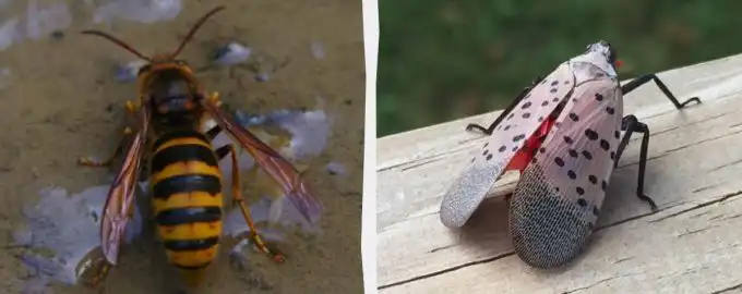 Nativa da Ásia, a mosca da lanterna manchada (Lycorma delicatula), ou SLF, é uma cigarra que se alimenta de uma vasta gama de plantas, incluindo vinhas, lúpulo, árvores de fruto com caroço e árvores de folha caduca. Qdo se alimenta, segrega um líquido pegajoso e doce que favorece o crescimento de um fungo fuliginoso que pode danificar ainda mais as plantas.