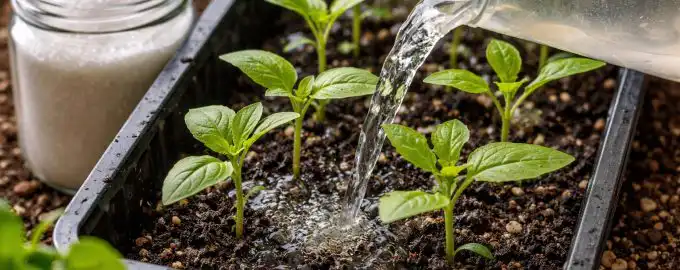 Para resolver o problema de plântulas atrofiadas, pálidas ou frágeis, a solução imediata é a aplicação de uma solução de açúcar branco (sacarose), que se decompõe em glicose e fornece energia direta para as células vegetais, fortalecendo o sistema radicular e acelerando a fotossíntese em condições de baixa luminosidade.