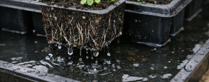 A base do sucesso é o controlo microclima. A lobélia tem um sistema radicular superficial que sobreaquece instantaneamente na cassete. Mesmo que a superfície do solo pareça húmida, na zona radicular de uma pequena célula, a humidade pode esgotar-se numa questão de horas sob o sol ativo da primavera.