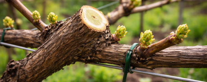 Quando se corta a ponta da videira, deve ver-se madeira verde brilhante e húmida.