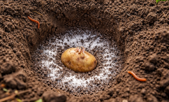 A cobertura do porta-enxerto com casca de árvore ou turfa retém a humidade e protege as raízes do sobreaquecimento, reduzindo a necessidade de rega.
