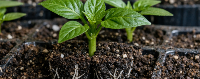 Um bom começo no escuro estabelece a base para as futuras colheitas. Quando as plântulas são atarracadas e fortes, toleram mais facilmente o transplante para o campo aberto ou para a estufa. Estes pimentos começam a florescer mais cedo, uma vez que não passaram uma quinzena extra a recuperar as suas forças depois de terem sido esticados no parapeito da janela.